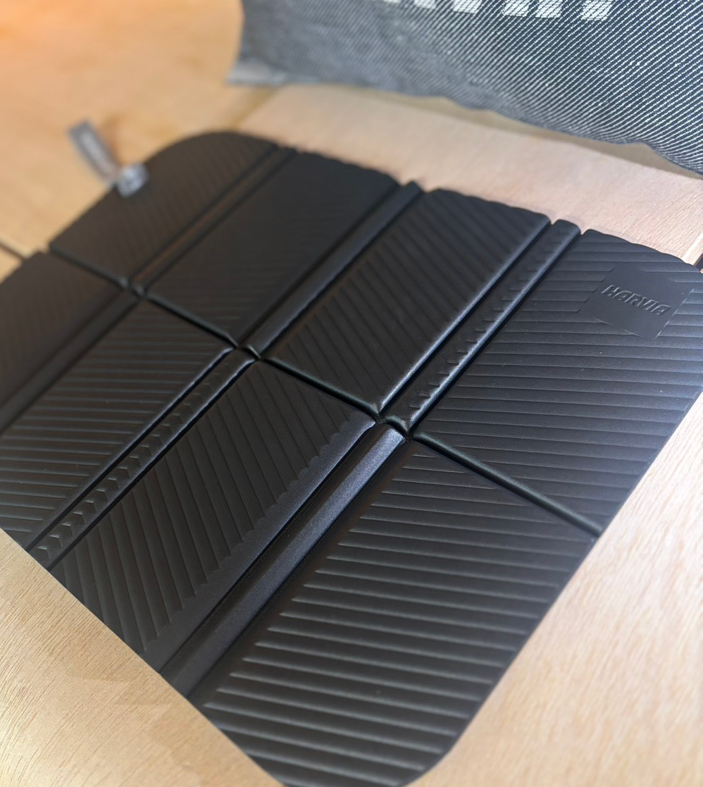 手のひらサイズの小ささと約90gの軽さで超コンパクト。広げるとお尻がすっぽり収まる大きさで、しっかりとパーソナルスペースを確保できます。